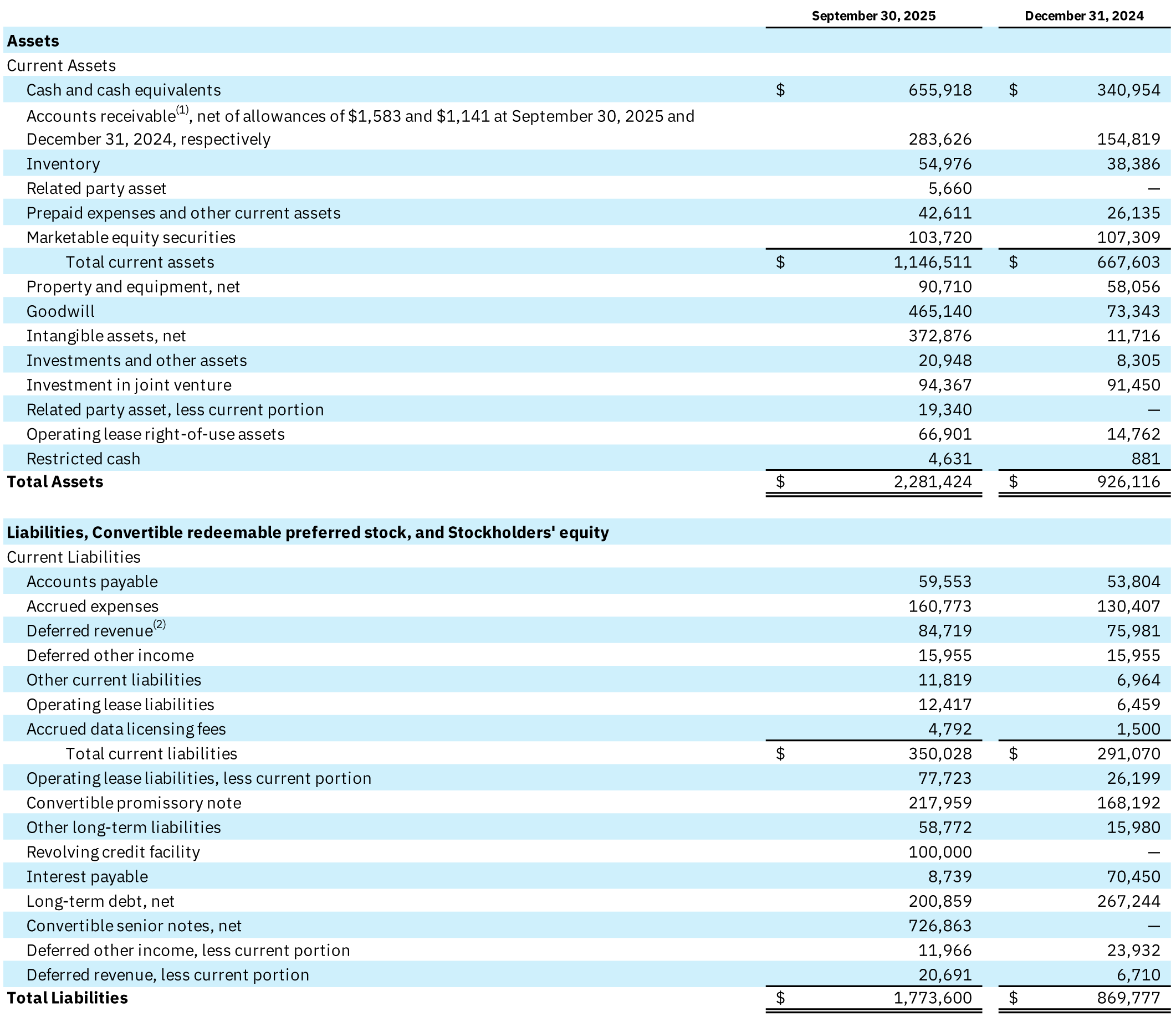 (2) Includes related party deferred revenue of $19,918 and $0 as of September 30, 2025 and December 31, 2024, respectively.