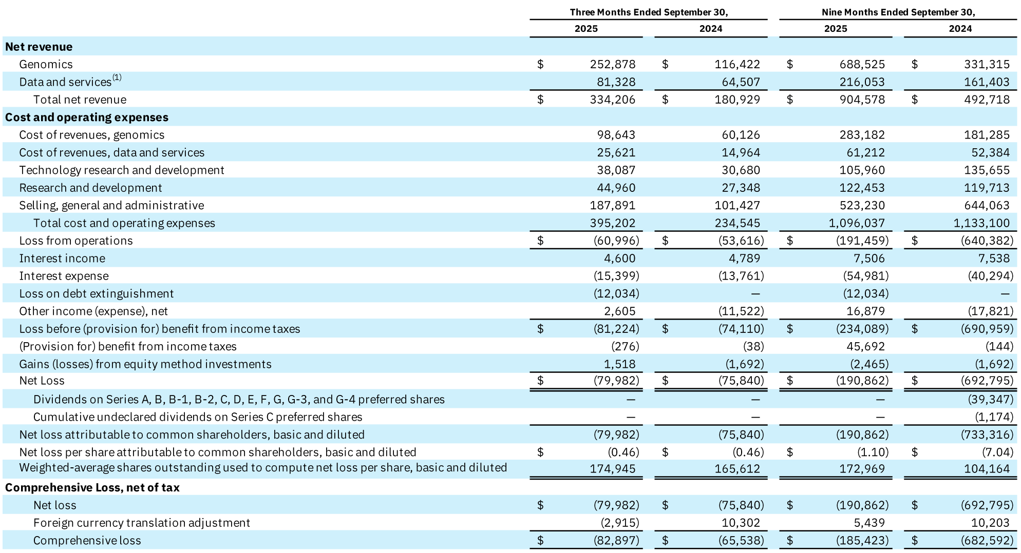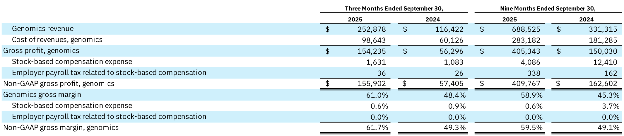 - Revenue from Genomics totaled $252.9 million in the third quarter of 2025, growing 117.2% compared to the third quarter of 2024.