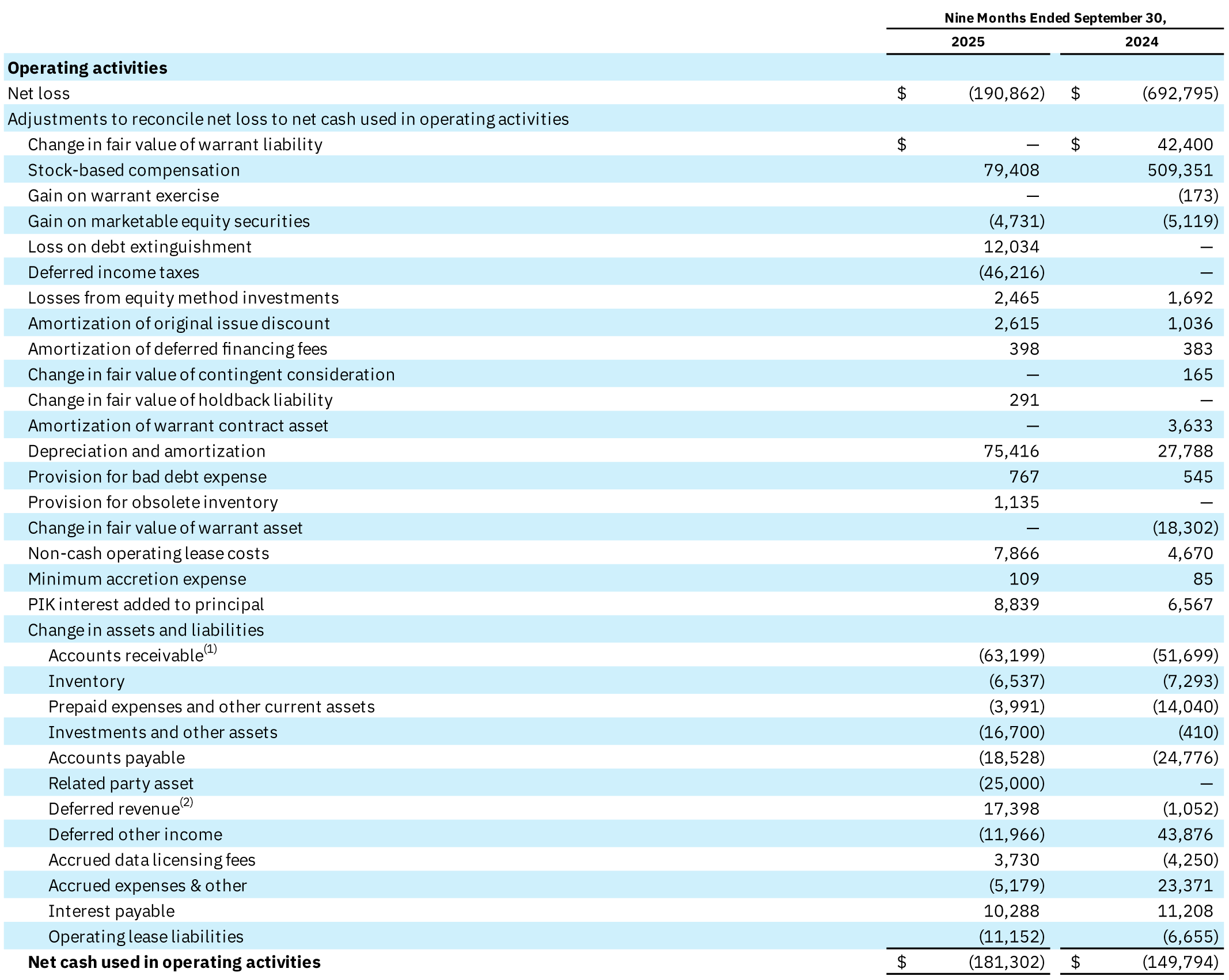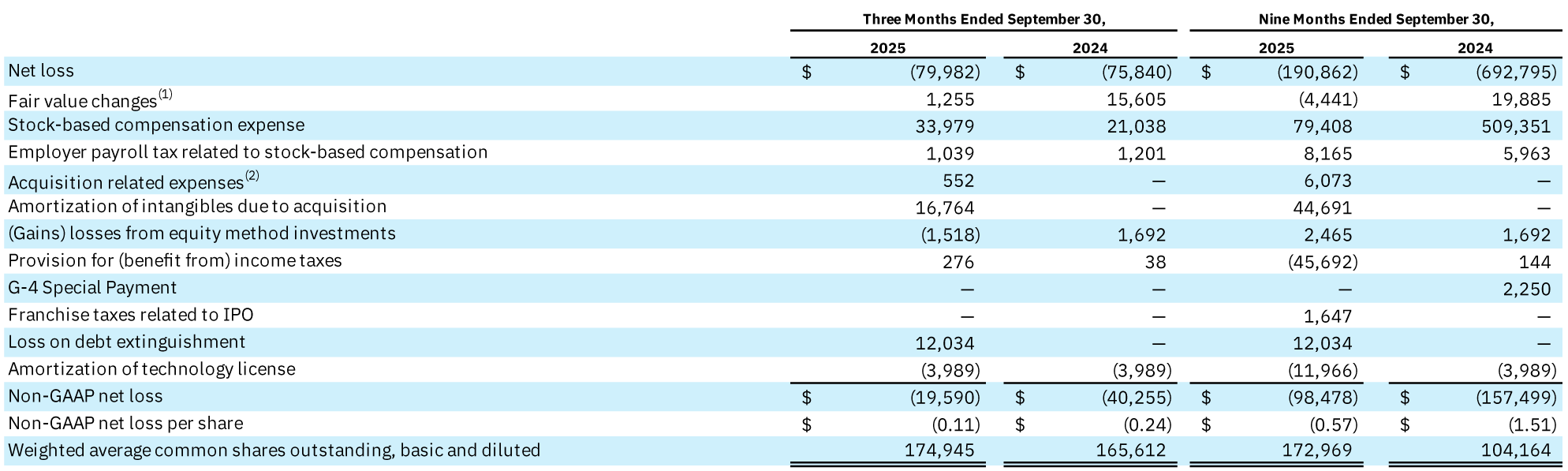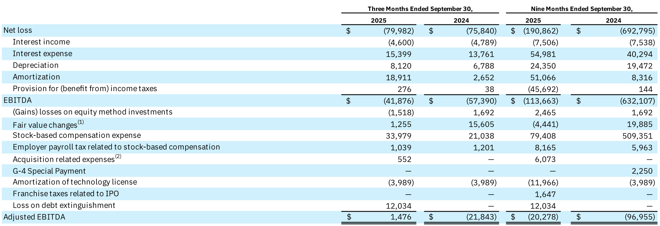 - Adjusted EBITDA of $1.5 million in the third quarter of 2025 compared to ($21.8 million) in the third quarter of 2024, an improvement of $23.3 million year-over-year.