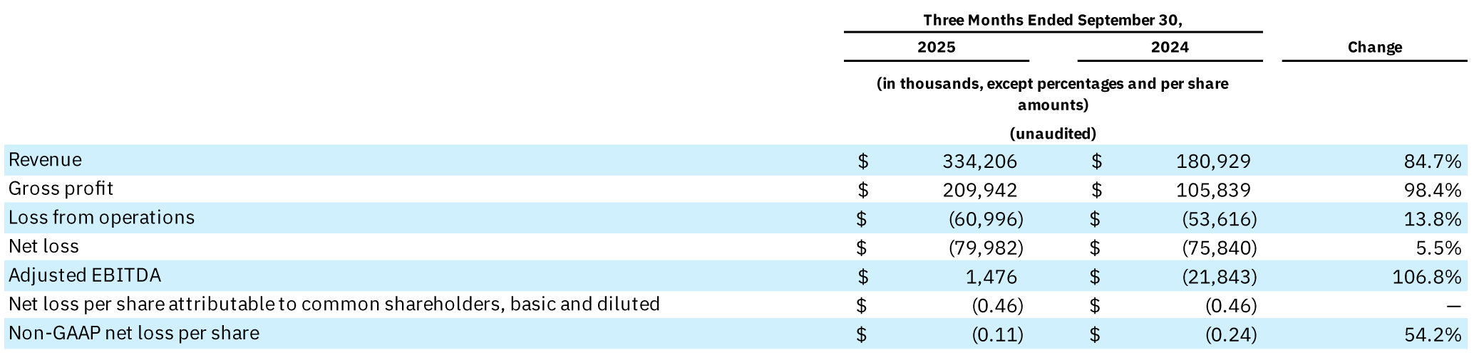 - Quarterly revenue increased 84.7% year-over-year to $334.2 million in the third quarter of 2025.