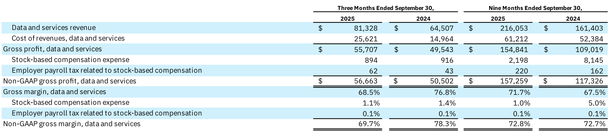 - Revenue from Data and services totaled $81.3 million in the third quarter of 2025, delivering 26.1% growth versus the third quarter of 2024, led by Insights (data licensing), which grew 37.6% year-over-year.