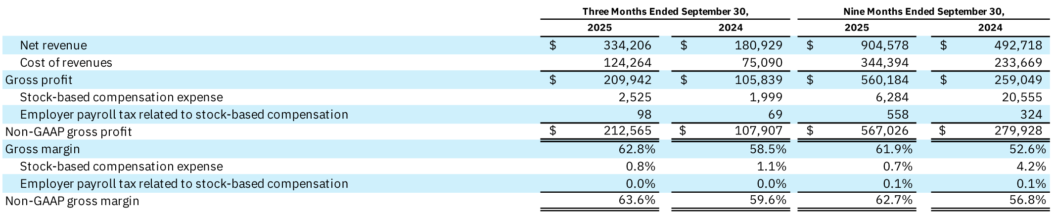 - Gross profit reached $209.9 million in the third quarter of 2025, an improvement of 98.4% year-over-year