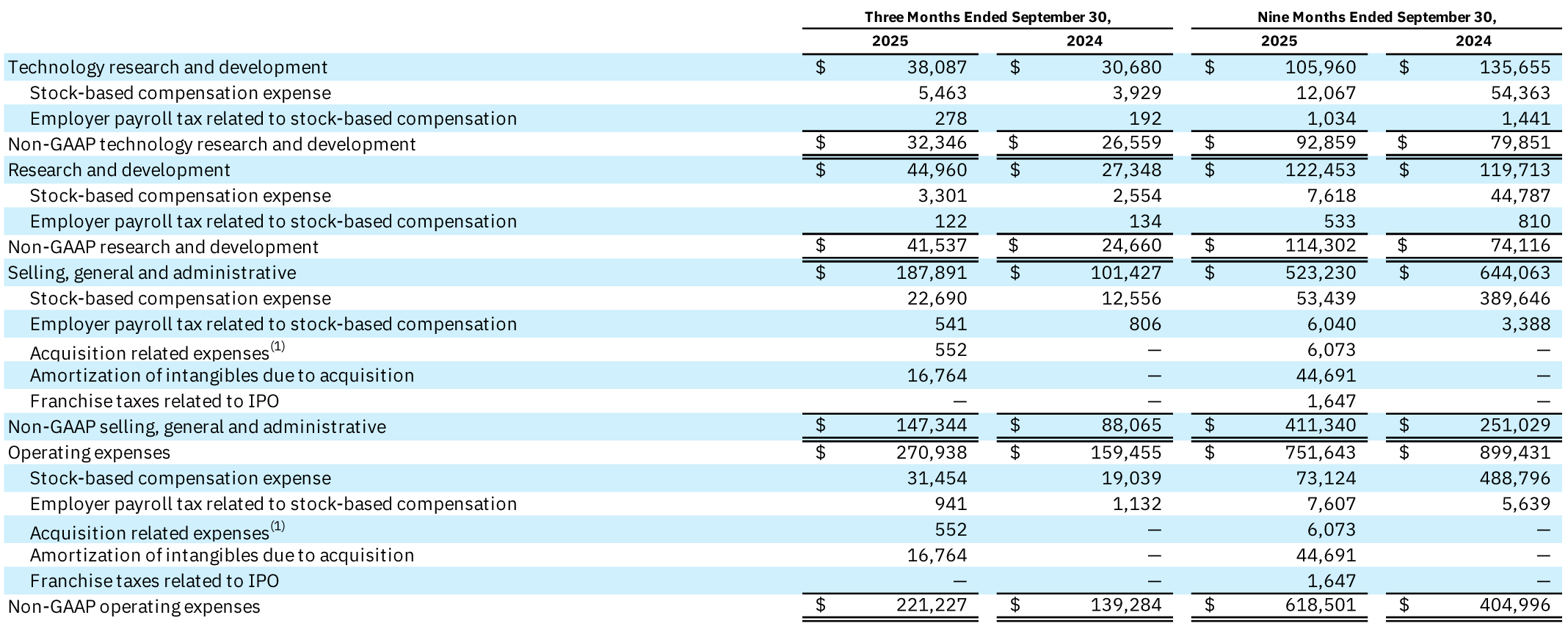 Non-GAAP gross profit is defined as GAAP gross profit, excluding stock-based compensation expense and employer payroll tax related to stock-based compensation (collectively, the “stock-based compensation adjustments”). Non-GAAP gross margin is defined as gross profit, excluding the stock-based compensation adjustments, as a percentage of revenue. Non-GAAP operating expenses are calculated as the sum of technology research and development expense, research and development expense, and selling, general and administrative expense, excluding the stock-based compensation adjustments, acquisition-related expenses, amortization of intangibles due to acquisition, and franchise taxes related to our IPO. Non-GAAP loss from operations is defined as loss from operations, adjusted to exclude (i) stock-based compensation expense, (ii) employer payroll tax related to stock-based compensation expense, (iii) acquisition-related expenses, (iv) franchise taxes related to our IPO, and (v) amortization of intangibles due to acquisition. Non-GAAP net loss is defined as net loss, adjusted to exclude (i) changes in fair value of our warrant liability, warrant asset, marketable equity securities, contingent consideration liabilities and indemnity-related holdback liabilities, (ii) stock-based compensation expense, (iii) employer payroll tax related to stock-based compensation expense, (iv) acquisition-related expenses, (v) amortization of intangibles due to acquisition, (vi) (gains) losses on equity method investments, (vii) provision for (benefit from) income taxes, (viii) the payment of $2.3 million of our Series G-4 convertible preferred stock in connection with the initial public offering (the “G-4 Special Payment”), (ix) franchise taxes related to our IPO, (x) loss on debt extinguishment, and (xi) amortization of deferred other income from our IP License Agreement with SB Tempus. Non-GAAP net loss per share is defined as non-GAAP net loss divided by weighted average common shares outstanding, basic and diluted.