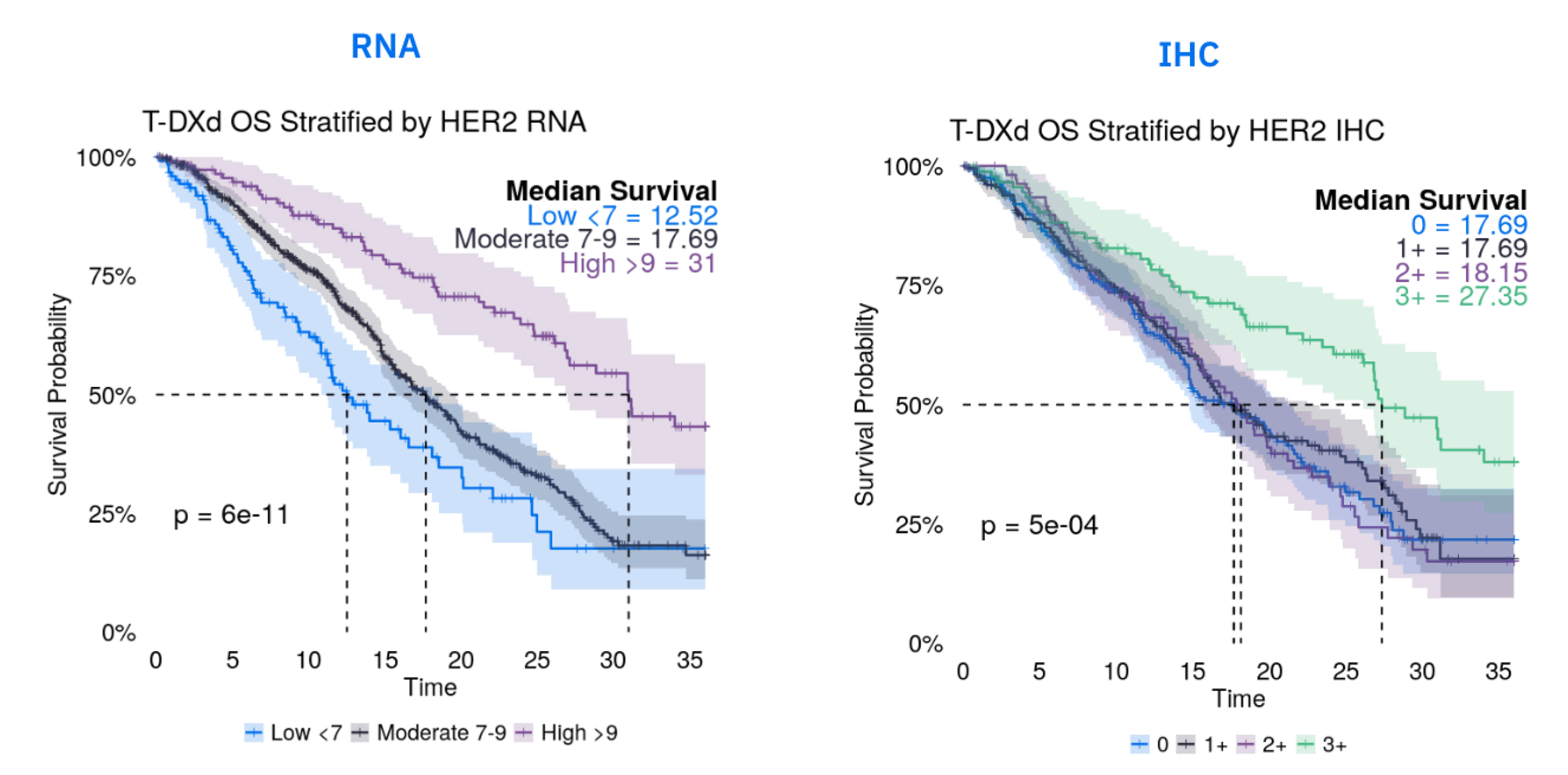 For example, in an internal analysis of over 800 breast cancer patients treated with trastuzumab deruxtecan (T-DXd), IHC could broadly separate the HER2 3+ patients but grouped the 0, 1+, and 2+ patients. In contrast, the continuous, quantitative nature of RNA data allowed us to stratify those same patients into at least three distinct outcome groups, providing a much more granular understanding of who is most likely to benefit. RNA can also be used to pre-screen patients and identify those most likely to be IHC-positive, which lowers screen-fail rates and accelerates trial enrollment, all while preserving precious tissue.